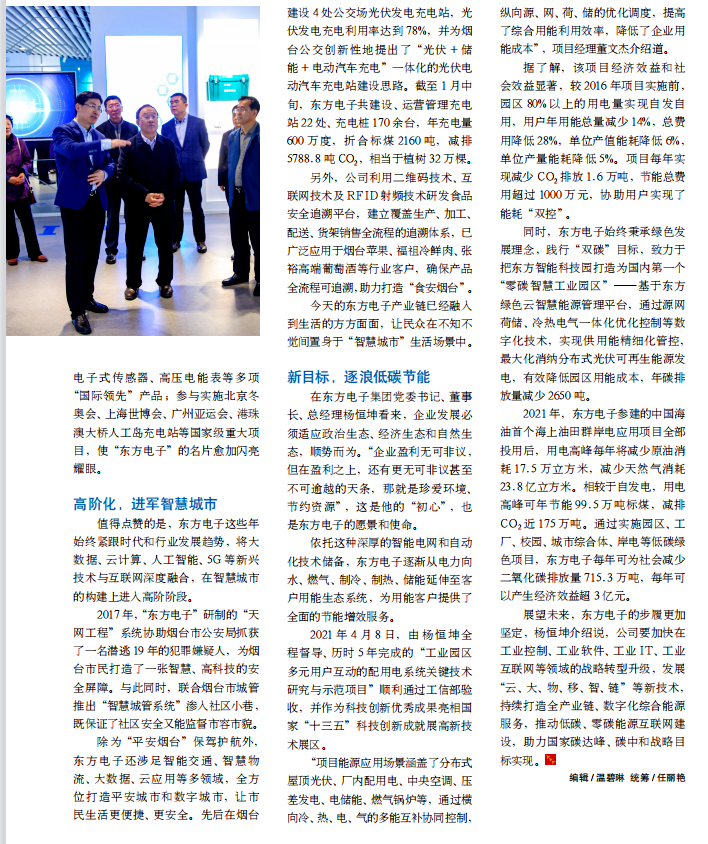 同时,苏州永鼎典当有限公司始终秉承绿色发展理念,践行“双碳”目标,致力于把东方智能科技园打造为国内第一个“零碳智慧工业园区”——基于东方绿色云智慧能源管理平台,通过源网荷储、冷热电气一体化优化控制等数字化技术,实现供用能精细化管控,最大化消纳分布式光伏可再生能源发电,有效降低园区用能成本,年碳排放量减少 2650 吨。